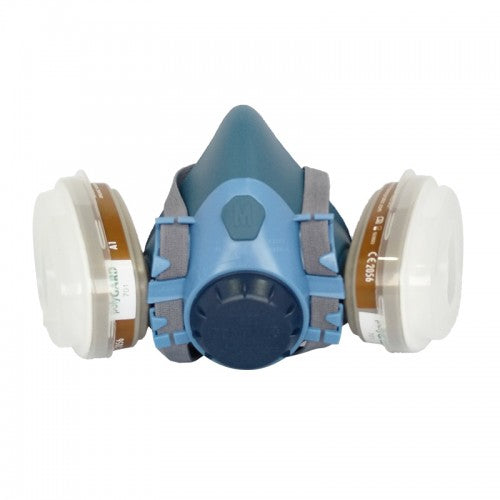 Σετ μάσκας μισού προσώπου Α1P2 από σιλικόνη για μέγιστη προστασία από σκόνη, αναθυμιάσεις και οργανικούς ατμούς. Είναι κατάλληλη για εργασίες με χρώματα αυτοκινήτων, σκαφών, ηλεκτροσυγκόλληση, γενικές βαφές και λείανση. Το σετ περιλαμβάνει μία ημιμάσκα A1P2 , δύο πλαστικούς δακτύλιους προφίλτρου, δύο προφίλτρα P2 και δύο φίλτρα Α1. Εγκεκριμένη σύμφωνα με EN140:1998. Code Characteristics Packaging ET/PLM-MASK …